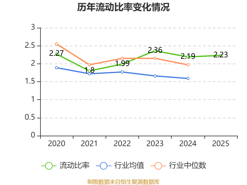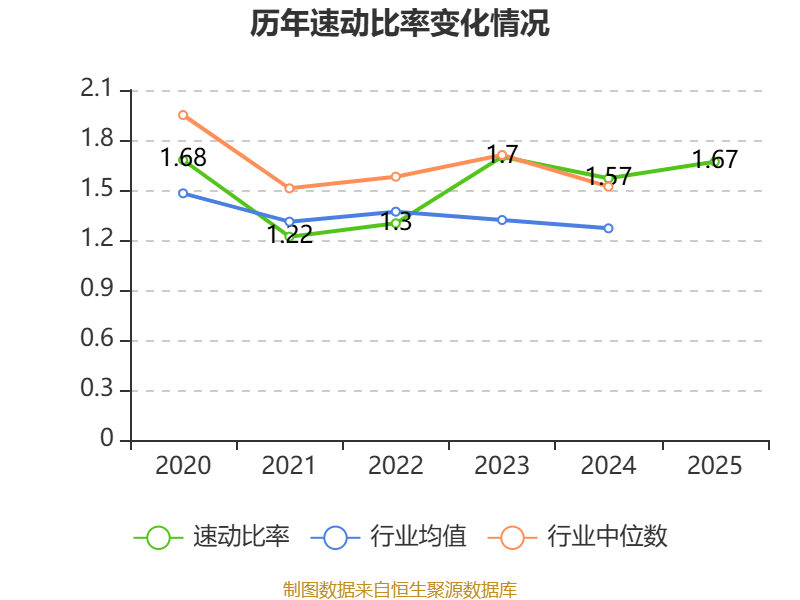 2025年,公司流动比率为2.23,速动比率为1.67。