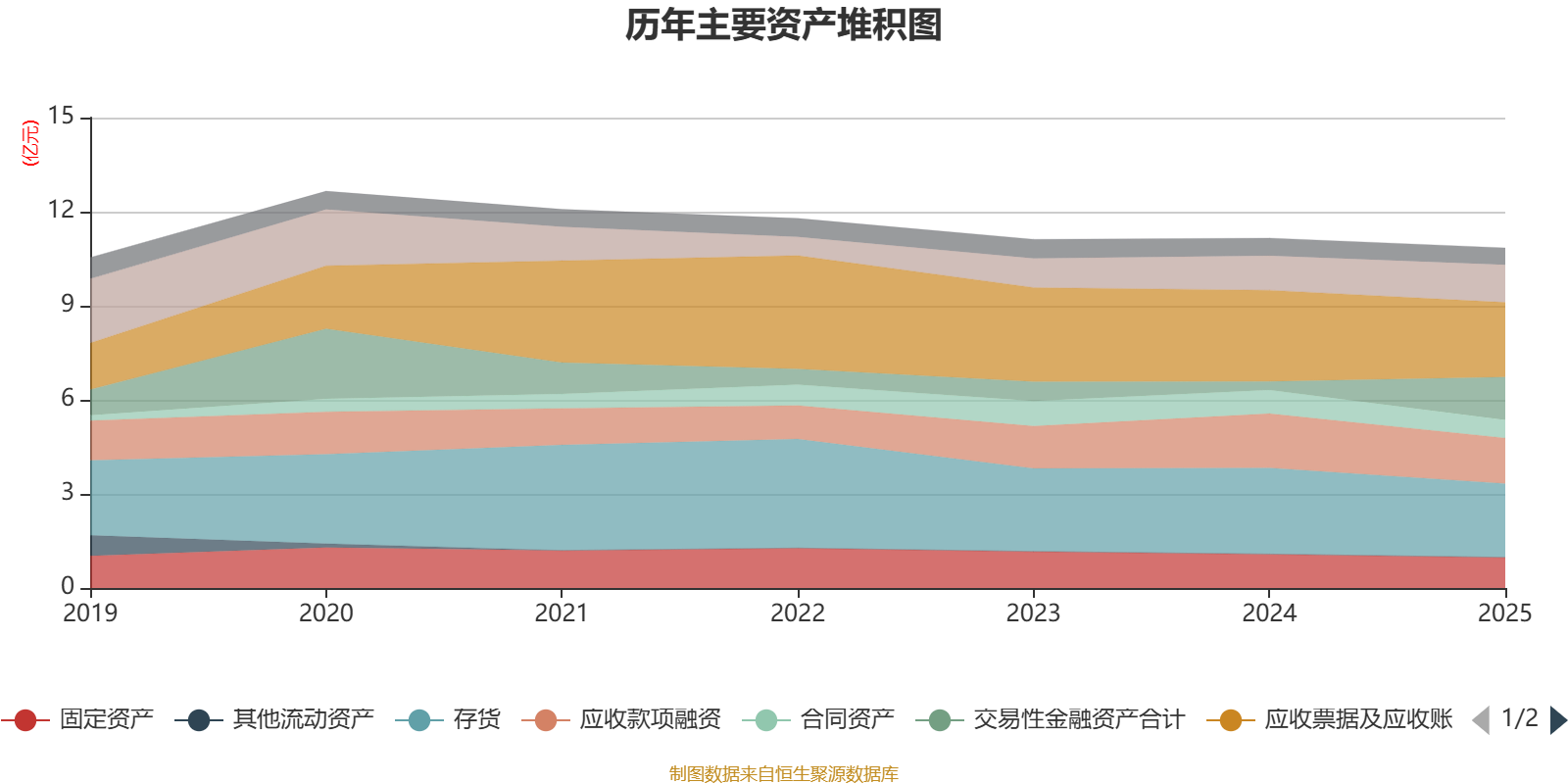 资产重大变化方面,截至2025年末,公司交易性金融资产合计较上年末增加398.09%,占公司总资产比重上升10.14个百分点;应收票据及应收账款较上年末减少18.15%,占公司总资产比重下降4.12个百分点;存货较上年末减少14.39%,占公司总资产比重下降2.94个百分点;应收款项融资较上年末减少16.23%,占公司总资产比重下降2.14个百分点。