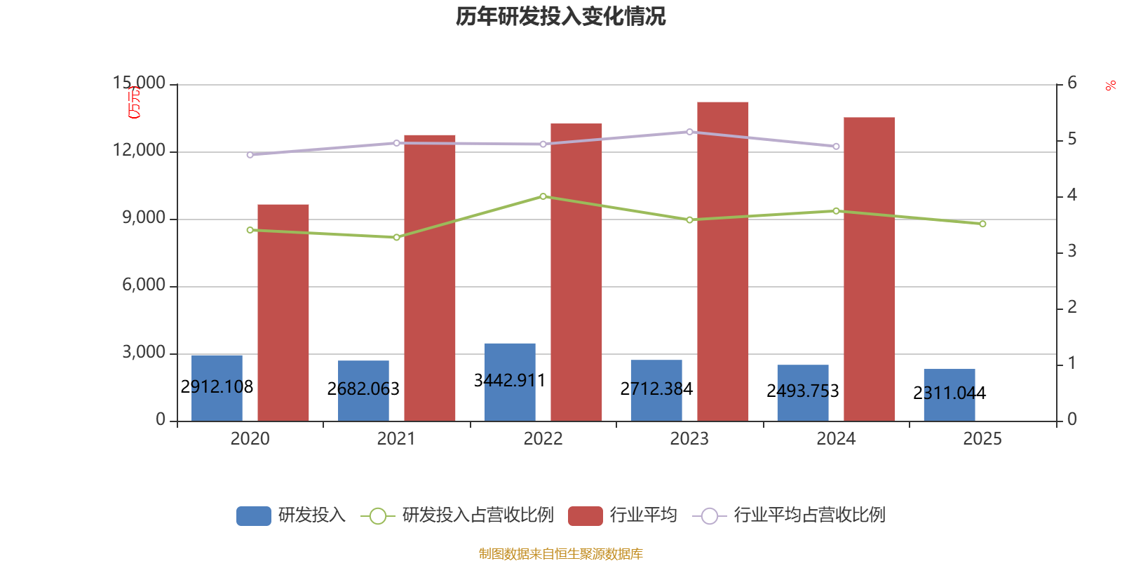 2025年全年,公司研发投入金额为2311.04万元,同比下降7.33%;研发投入占营业收入比例为3.51%,相比上年同期下降0.23个百分点。此外,公司全年研发投入资本化率为0%。