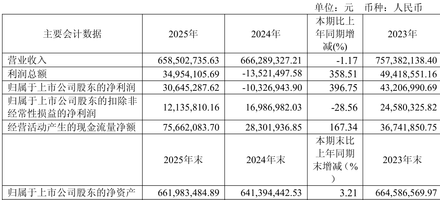 中证智能财讯中电电机(603988)4月18日披露2025年年度报告。2025年,公司实现营业总收入6.59亿元,同比下降1.17%;归母净利润3064.53万元,同比扭亏;扣非净利润1213.58万元,同比下降28.56%;经营活动产生的现金流量净额为7566.21万元,同比增长167.34%;报告期内,中电电机基本每股收益为0.13元,加权平均净资产收益率为4.71%。
