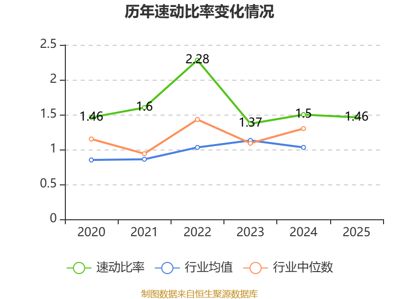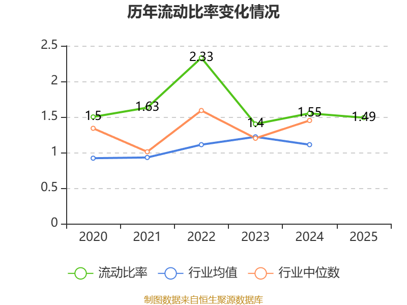 2025年,公司流动比率为1.49,速动比率为1.46。