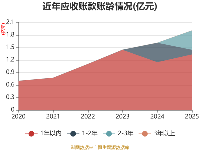 从应收账款账龄结构来看,截至2025年末,公司账龄在1年以内的应收账款余额为1.33亿元,较上年末增长1856.49万元,占应收账款总额比例为69.77%,较上年末下降1.3个百分点。
