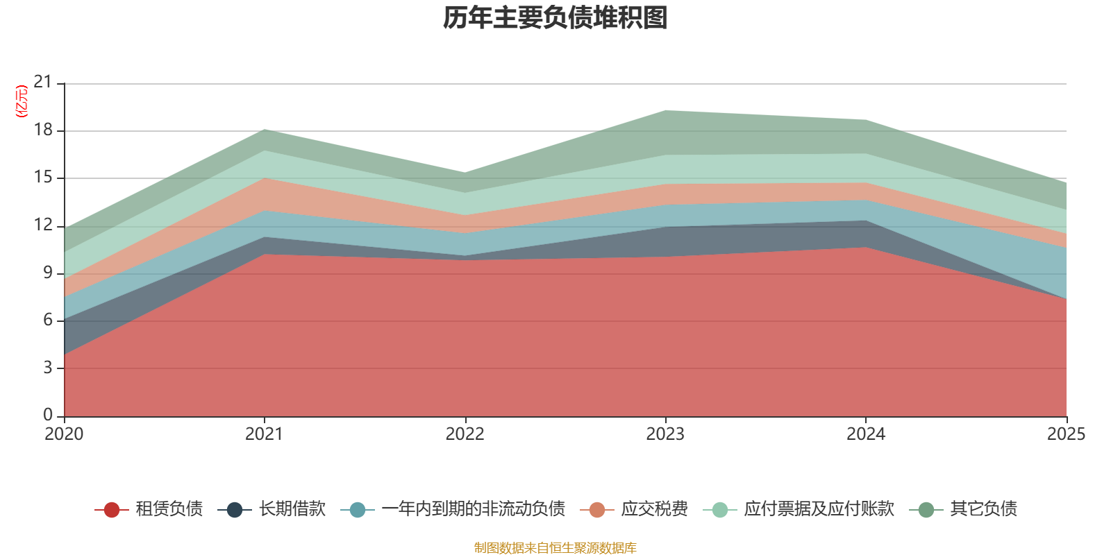 负债重大变化方面,截至2025年末,公司租赁负债较上年末减少30.66%,占公司总资产比重下降4.88个百分点;一年内到期的非流动负债较上年末增加149.42%,占公司总资产比重上升3.27个百分点;长期借款较上年末减少100%,占公司总资产比重下降2.71个百分点;应付票据及应付账款较上年末减少18.13%,占公司总资产比重下降0.46个百分点。