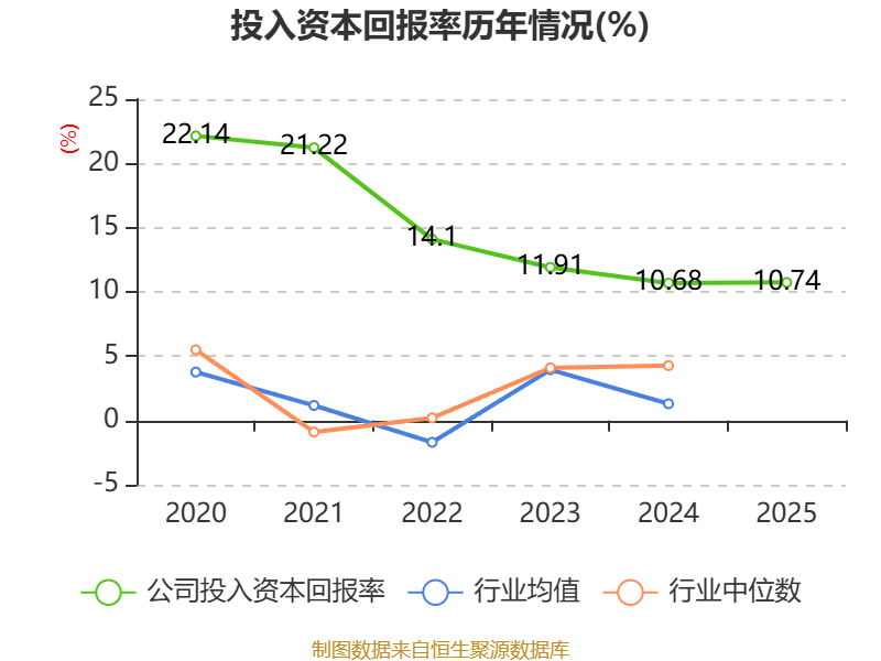 数据显示,2025年公司加权平均净资产收益率为12.15%,较上年同期下降0.64个百分点。公司2025年投入资本回报率为10.74%,较上年同期上升0.06个百分点。