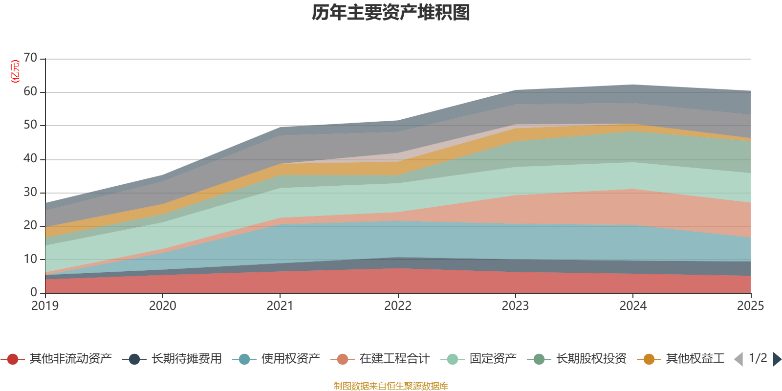 资产重大变化方面,截至2025年末,公司使用权资产较上年末减少32.49%,占公司总资产比重下降5.2个百分点;其他权益工具投资较上年末减少59.98%,占公司总资产比重下降2.1个百分点;固定资产较上年末增加10.64%,占公司总资产比重上升1.8个百分点;无形资产较上年末增加118.86%,占公司总资产比重上升1.61个百分点。