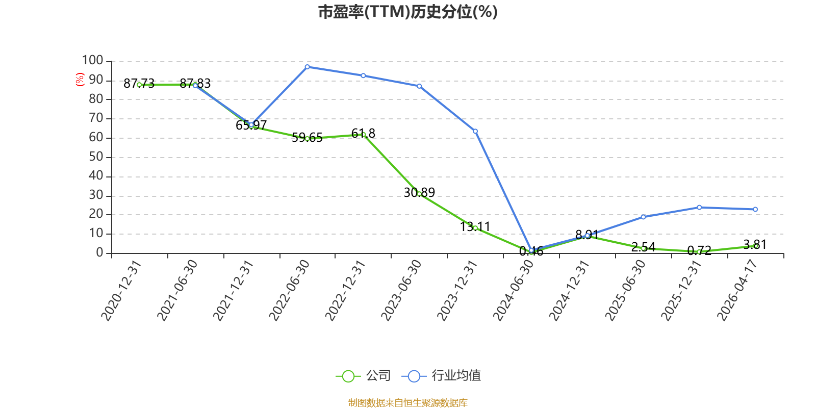 市盈率、市净率为负时,不显示当期分位数,会导致折线图中断。