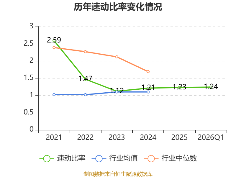2026年第一季度,公司流动比率为1.7,速动比率为1.24。