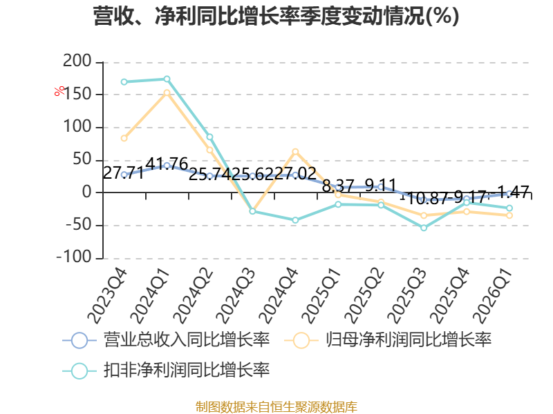 负债重大变化方面,截至2026年一季度末,公司短期借款较上年末减少33.52%,占公司总资产比重下降1.69个百分点;应付票据及应付账款较上年末减少4.62%,占公司总资产比重下降0.69个百分点;应付职工薪酬较上年末减少25%,占公司总资产比重下降0.23个百分点;长期借款较上年末减少4.78%,占公司总资产比重下降0.18个百分点。