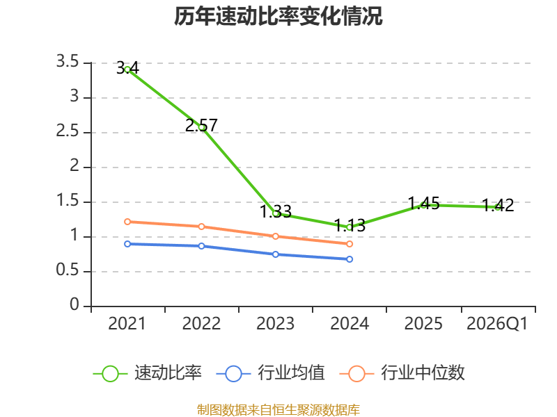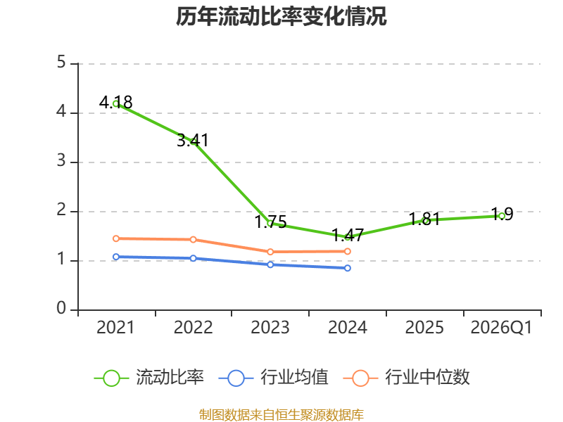 2026年第一季度,公司流动比率为1.9,速动比率为1.42。