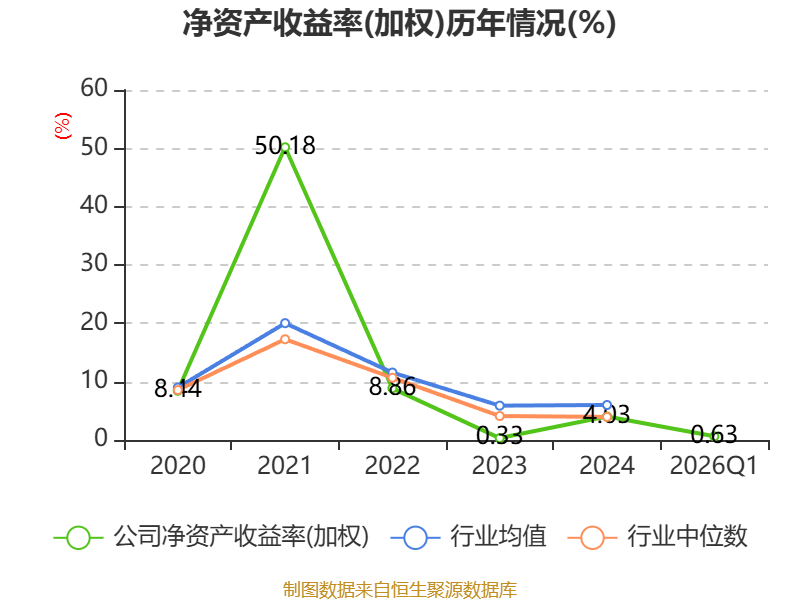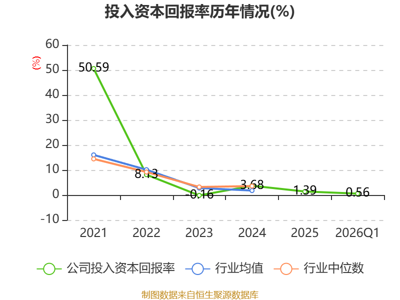 盈利能力方面, 2026年一季度公司加权平均净资产收益率为0.63%,同比下降0.42个百分点。公司2026年第一季度投入资本回报率为0.56%,较上年同期下降0.42个百分点。