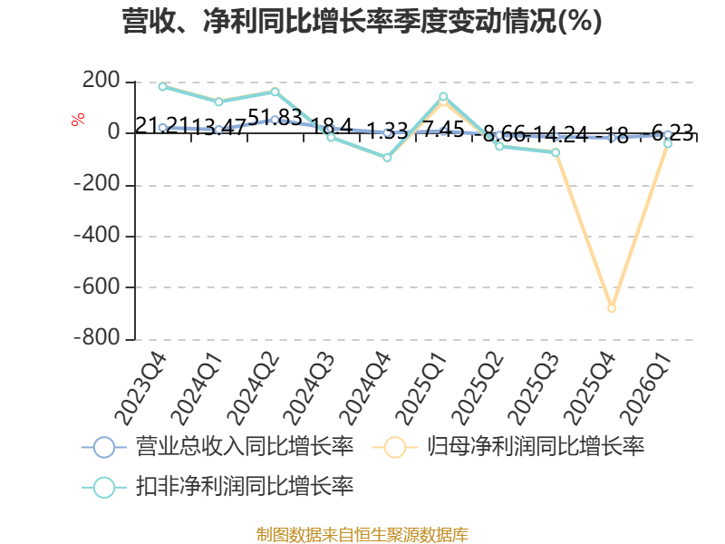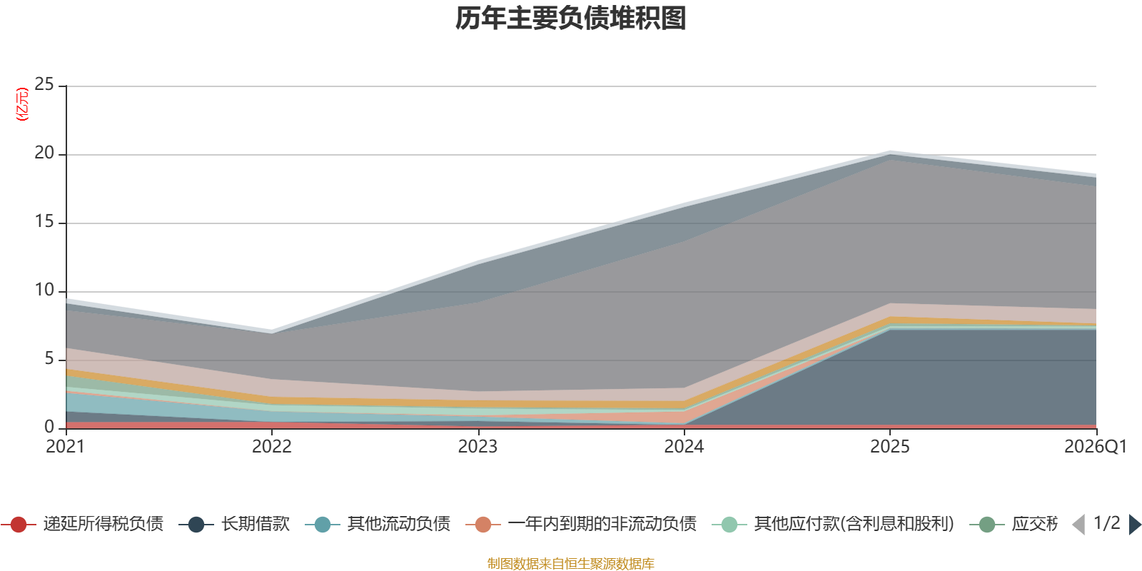 负债重大变化方面,截至2026年一季度末,公司应付票据及应付账款较上年末减少14.42%,占公司总资产比重下降1.8个百分点;应付职工薪酬较上年末减少72.59%,占公司总资产比重下降0.49个百分点;短期借款较上年末增加62.51%,占公司总资产比重上升0.35个百分点;应交税费较上年末减少61.47%,占公司总资产比重下降0.18个百分点。