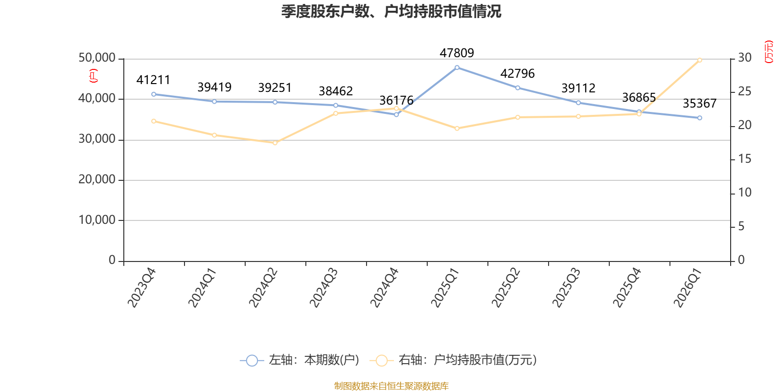 一季报显示,2026年一季度末的公司十大流通股东中,新进股东为广发资源优选股票型发起式证券投资基金、高盛公司有限责任公司、崔凤芹、陈伟,取代了上年末的南方中证1000交易型开放式指数证券投资基金、金元顺安元启灵活配置混合型证券投资基金、华夏中证1000交易型开放式指数证券投资基金、沈伟定。在具体持股比例上,广发优势成长股票型证券投资基金、广发聚丰混合型证券投资基金、香港中央结算有限公司持股有所上升。
