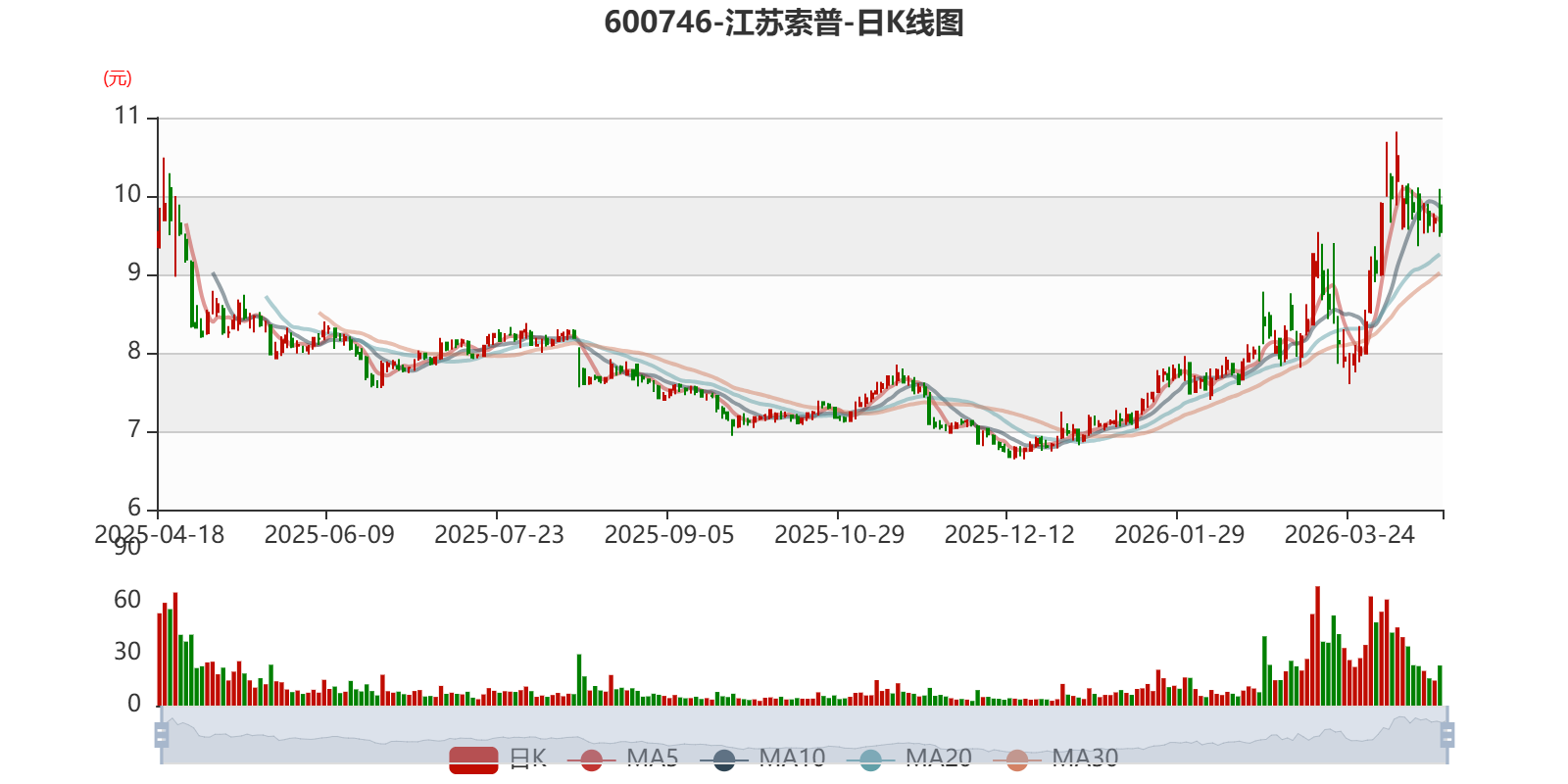 中证智能财讯江苏索普(600746)4月18日披露2026年第一季度报告。公司实现营业总收入15.14亿元,同比下降6.23%;归母净利润3409.78万元,同比下降40.27%;扣非净利润3365.57万元,同比下降40.98%;经营活动产生的现金流量净额为-2.14亿元,上年同期为-2689.36万元;报告期内,江苏索普基本每股收益为0.0296元,加权平均净资产收益率为0.63%。