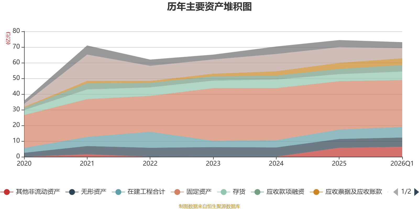资产重大变化方面,截至2026年一季度末,公司货币资金较上年末减少35.69%,占公司总资产比重下降4.64个百分点;存货较上年末增加17.61%,占公司总资产比重上升1.21个百分点;在建工程合计较上年末增加12.37%,占公司总资产比重上升1.17个百分点;应收款项融资较上年末增加22.44%,占公司总资产比重上升1.14个百分点。