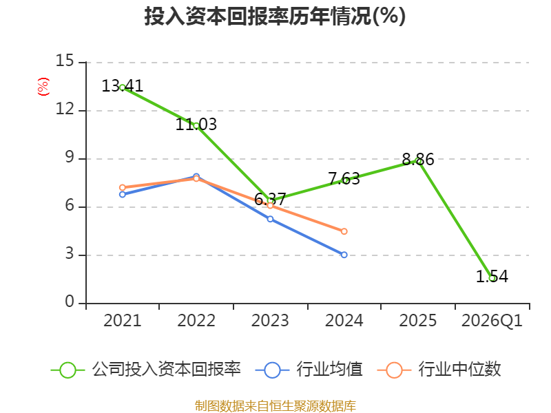 盈利能力方面, 2026年一季度公司加权平均净资产收益率为1.85%,同比上升0.74个百分点。公司2026年第一季度投入资本回报率为1.54%,较上年同期上升0.53个百分点。