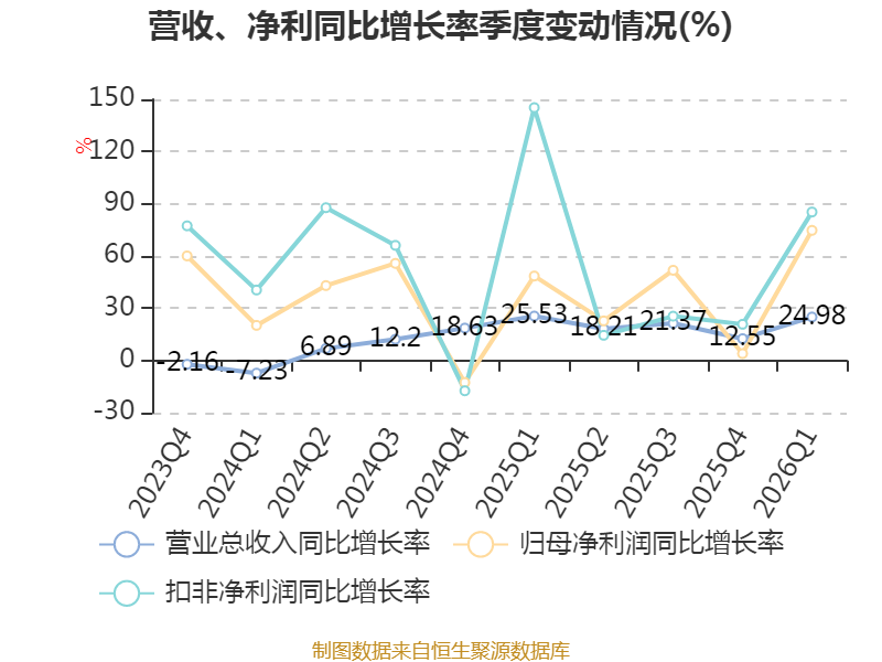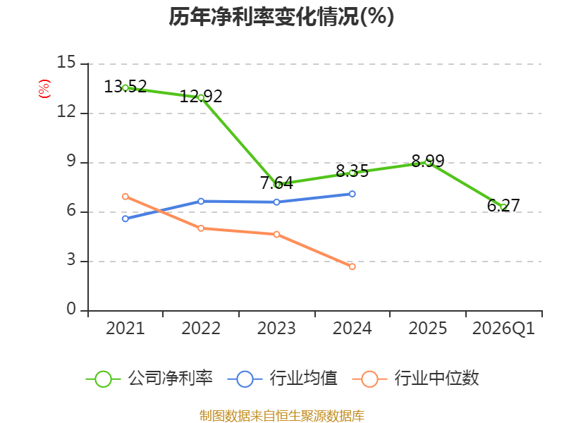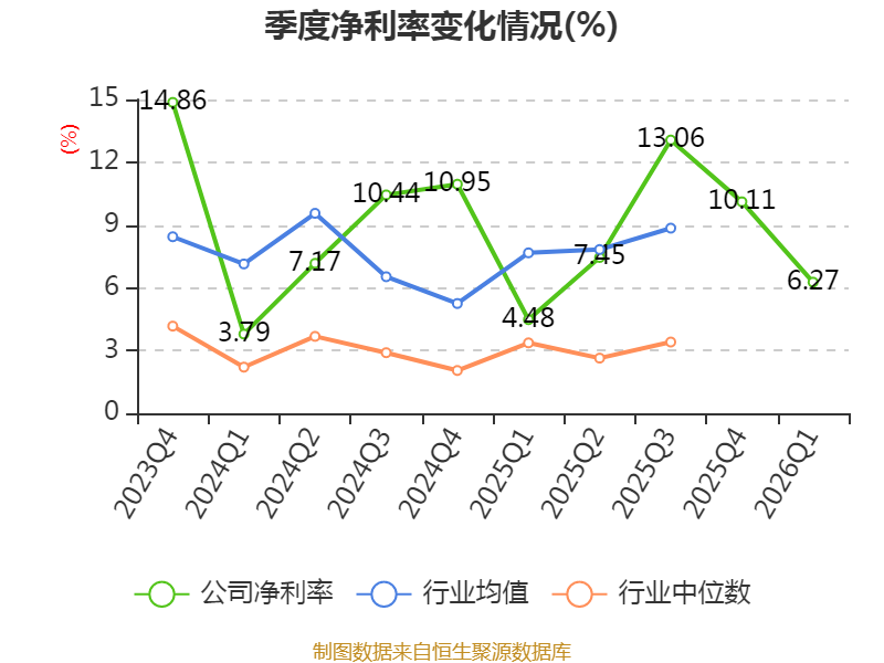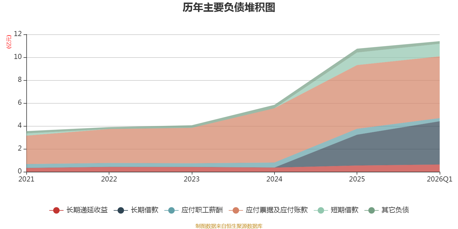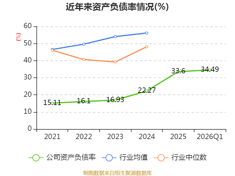 负债重大变化方面,截至2026年一季度末,公司长期借款较上年末增加40.51%,占公司总资产比重上升3.02个百分点;应付票据及应付账款较上年末减少3.12%,占公司总资产比重下降1.09个百分点;应付职工薪酬较上年末减少46.48%,占公司总资产比重下降0.78个百分点;应交税费较上年末减少47.17%,占公司总资产比重下降0.26个百分点。