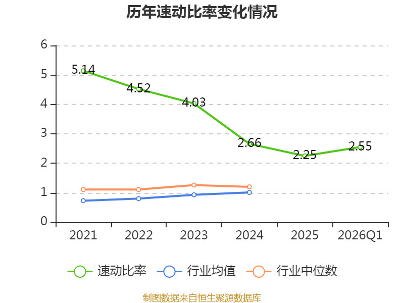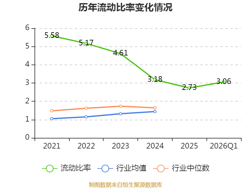 2026年第一季度,公司流动比率为3.06,速动比率为2.55。