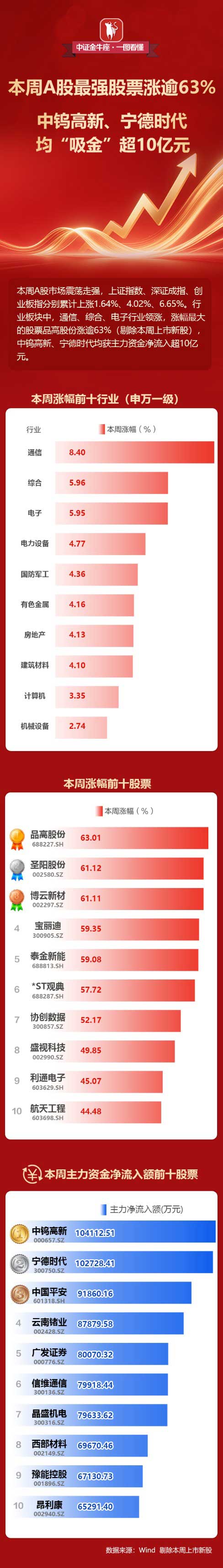 【一图看懂】本周A股最强股票涨逾63%,中钨高新、宁德时代均“吸金”超10亿元