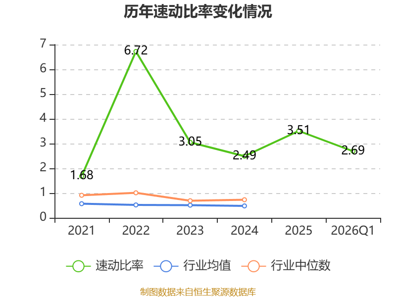 2026年第一季度,公司流动比率为3.39,速动比率为2.69。