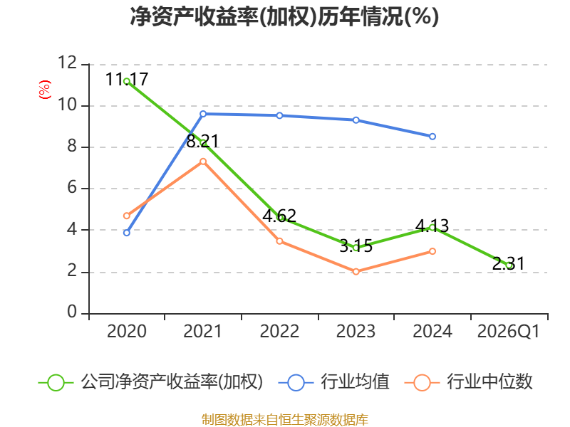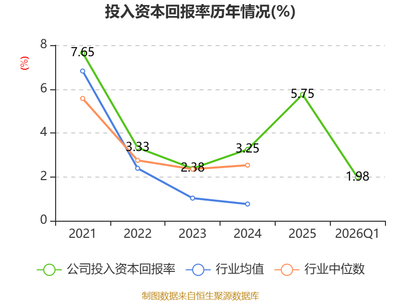盈利能力方面, 2026年一季度公司加权平均净资产收益率为2.31%,同比上升1.19个百分点。公司2026年第一季度投入资本回报率为1.98%,较上年同期上升1.07个百分点。