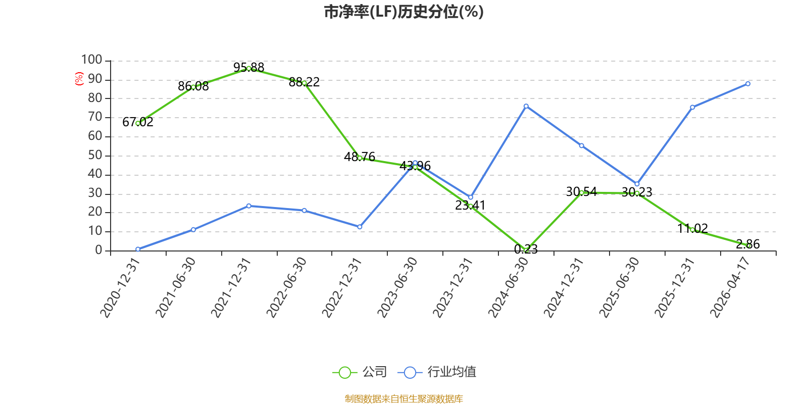 市盈率、市净率为负时,不显示当期分位数,会导致折线图中断。