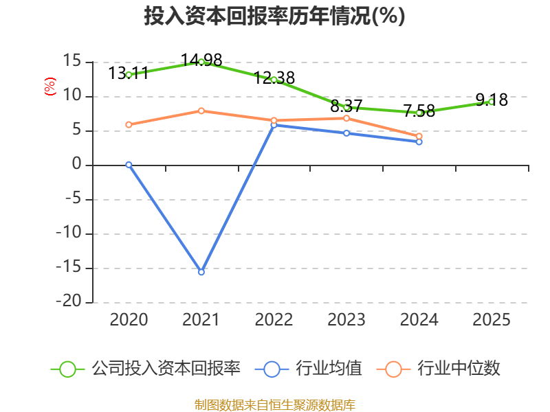 数据显示,2025年公司加权平均净资产收益率为9.42%,较上年同期上升1.45个百分点。公司2025年投入资本回报率为9.18%,较上年同期上升1.6个百分点。