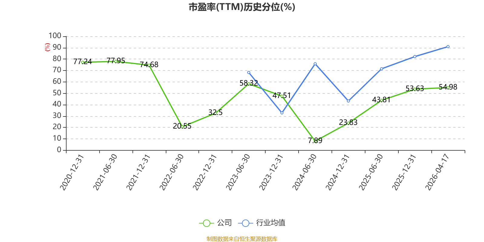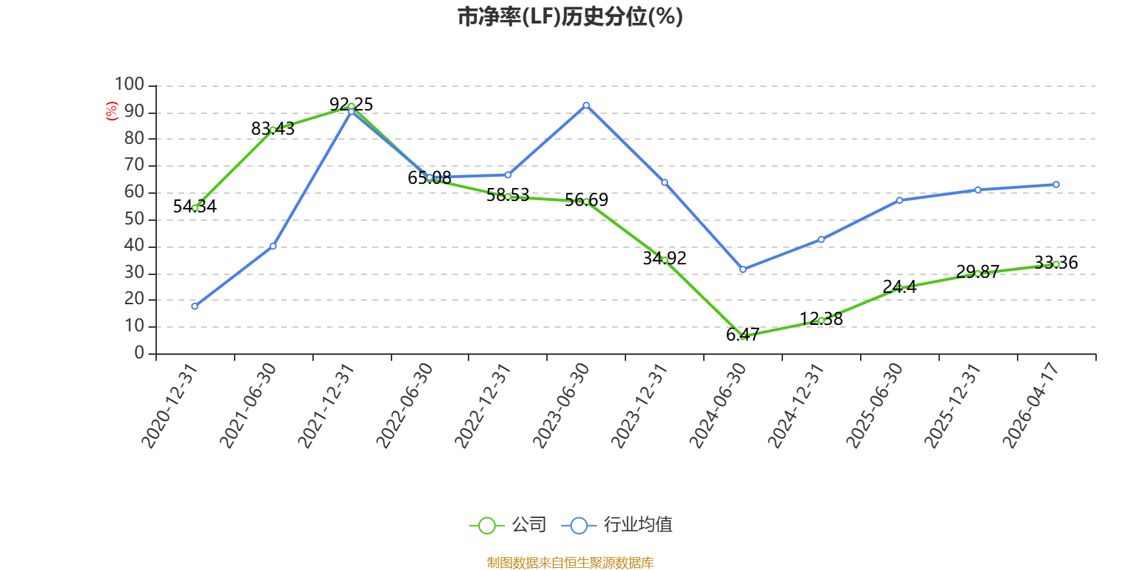 市盈率、市净率为负时,不显示当期分位数,会导致折线图中断。