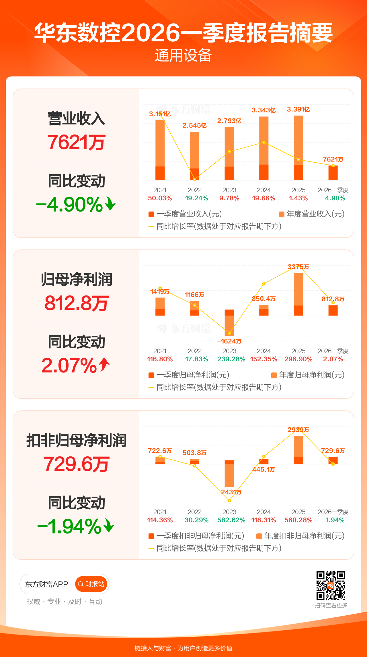 图解财报:华东数控一季度归母净利润812.81万元,同比增长2.07%