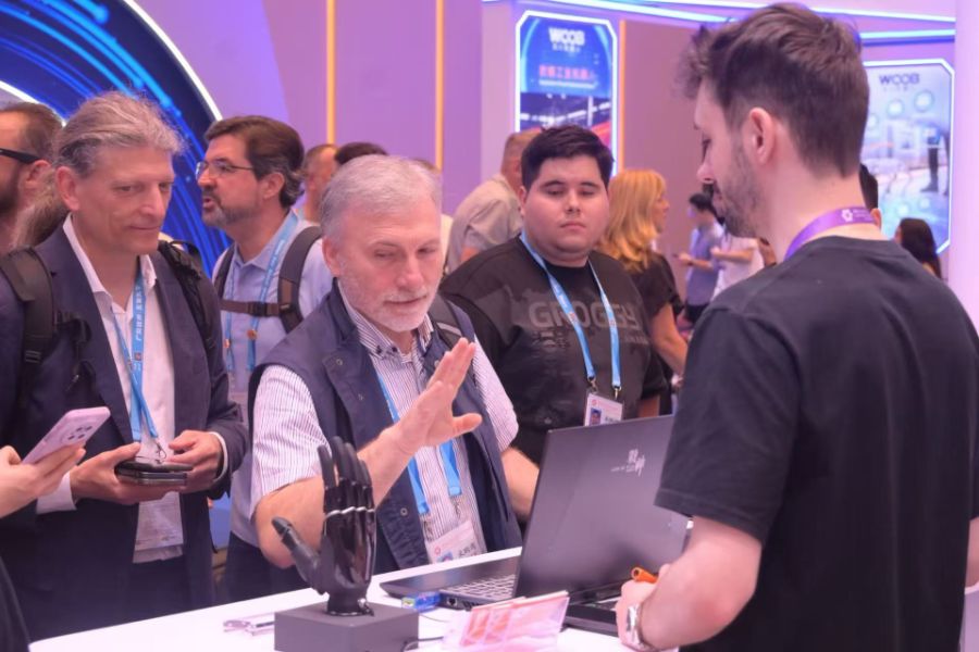 在傲意科技展位前,诸多欧美客商对现场的脑电传感器灵巧手展示出极高兴趣。“很多客商带着明确的场景需求过来找我们咨询。欧美客商对价格并不敏感,他们更看重产品是否满足当下需求。”傲意科技品宣部卢晶晶告诉南方财经记者。