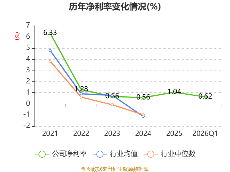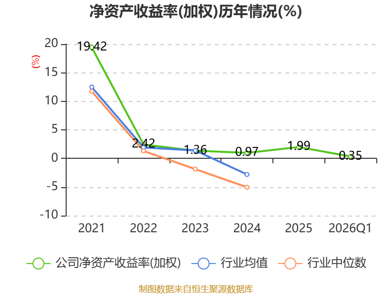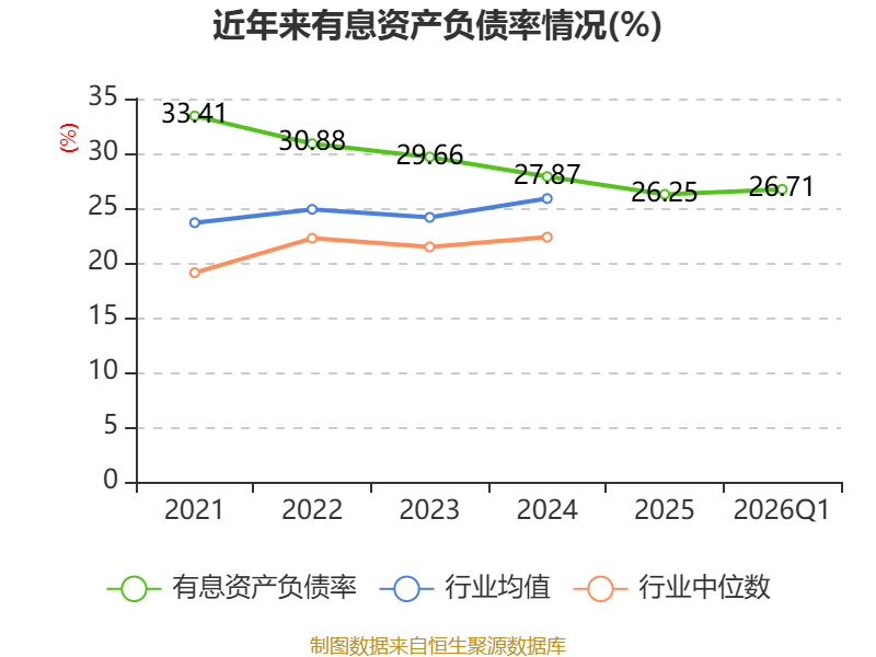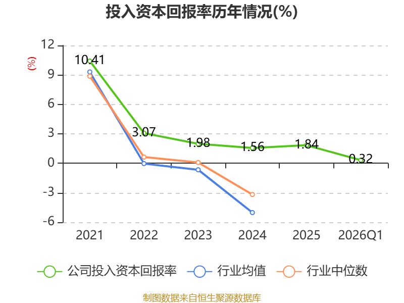 盈利能力方面, 2026年一季度公司加权平均净资产收益率为0.35%,同比下降0.31个百分点。公司2026年第一季度投入资本回报率为0.32%,较上年同期下降0.25个百分点。