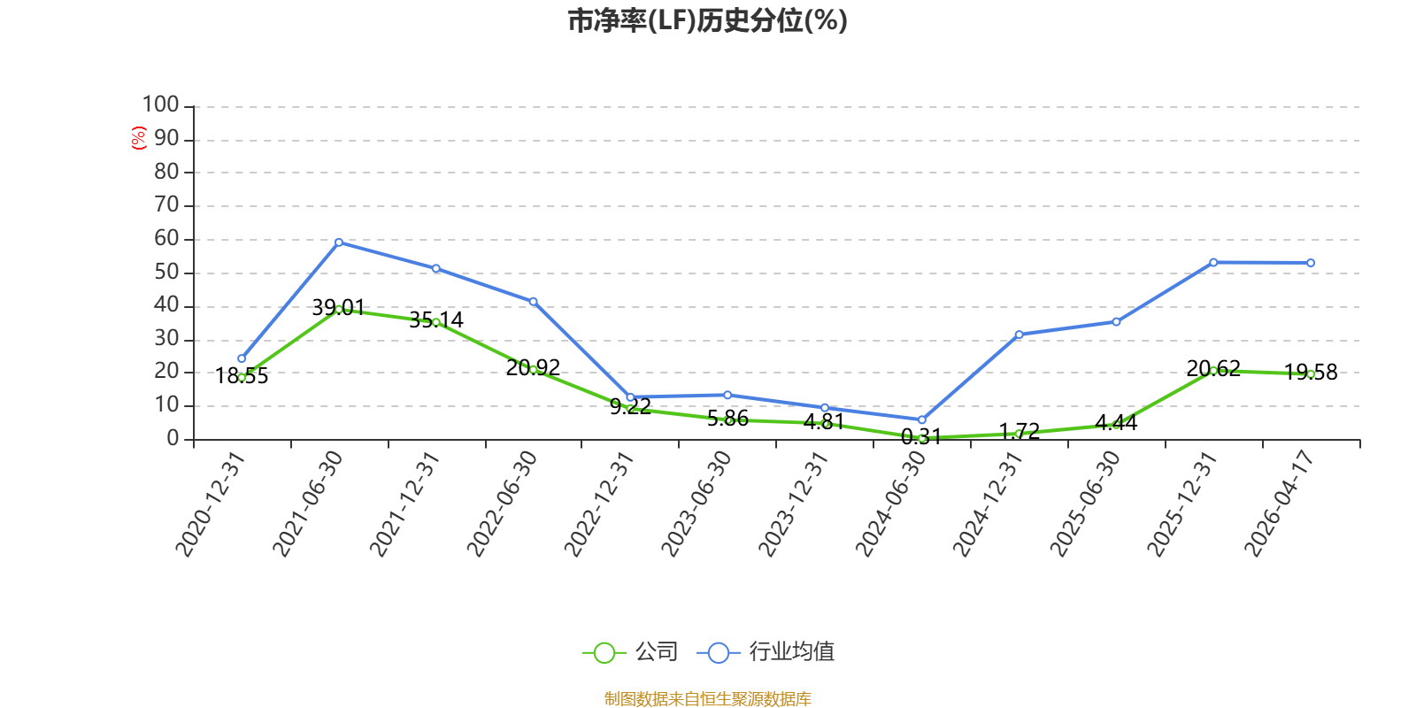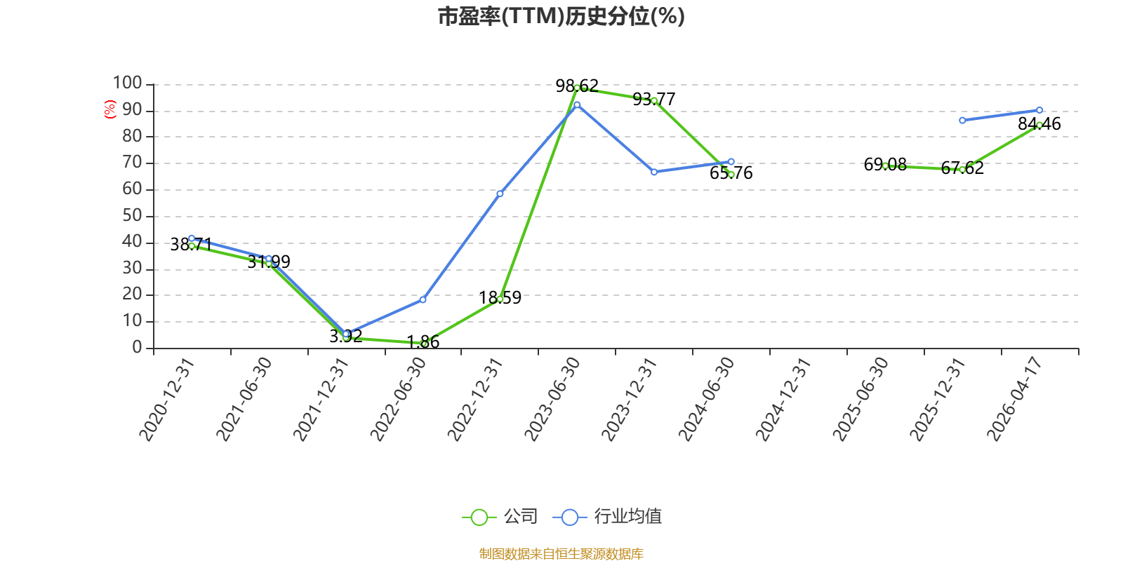 市盈率、市净率为负时,不显示当期分位数,会导致折线图中断。