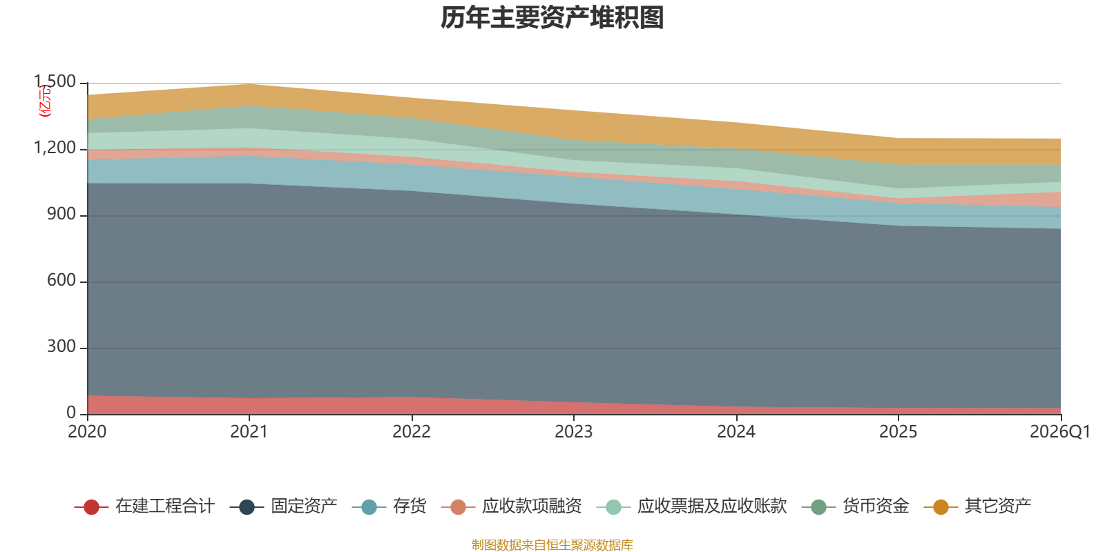 资产重大变化方面,截至2026年一季度末,公司应收款项融资较上年末增加220.75%,占公司总资产比重上升3.77个百分点;货币资金较上年末减少26.85%,占公司总资产比重下降2.32个百分点;固定资产较上年末减少1.52%,占公司总资产比重下降0.87个百分点;存货较上年末减少4.3%,占公司总资产比重下降0.34个百分点。