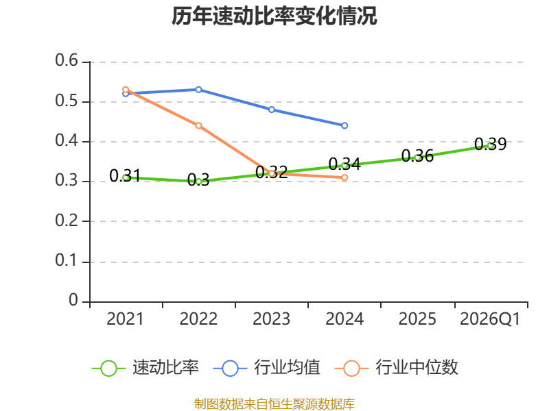 2026年第一季度,公司流动比率为0.56,速动比率为0.39。