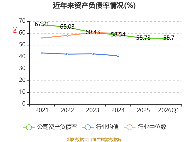 负债重大变化方面,截至2026年一季度末,公司其他流动负债较上年末减少40.24%,占公司总资产比重下降1.35个百分点;应付票据及应付账款较上年末增加2.4%,占公司总资产比重上升0.48个百分点;长期借款较上年末增加6.67%,占公司总资产比重上升0.44个百分点;短期借款较上年末增加1.73%,占公司总资产比重上升0.33个百分点。