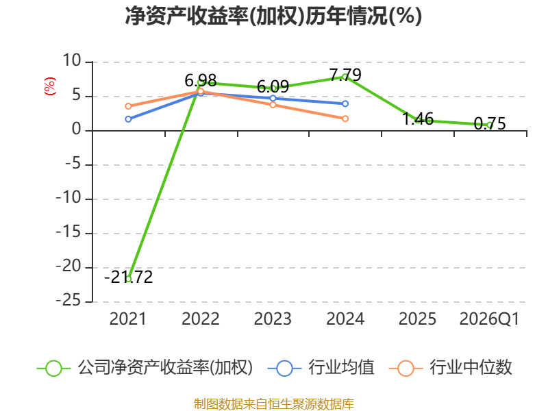 盈利能力方面, 2026年一季度公司加权平均净资产收益率为0.75%,同比上升0.17个百分点。公司2026年第一季度投入资本回报率为1.17%,较上年同期上升0.21个百分点。