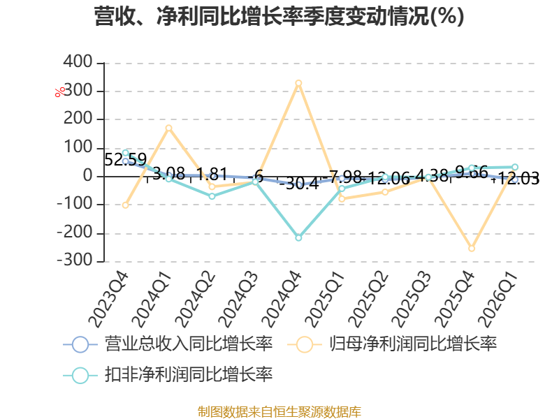 资产重大变化方面,截至2026年一季度末,公司交易性金融资产合计较上年末增加249.86%,占公司总资产比重上升2.83个百分点;货币资金较上年末减少10.92%,占公司总资产比重下降2.63个百分点;长期股权投资较上年末增加1.11%,占公司总资产比重上升0.5个百分点;应收票据及应收账款较上年末减少3.17%,占公司总资产比重下降0.22个百分点。