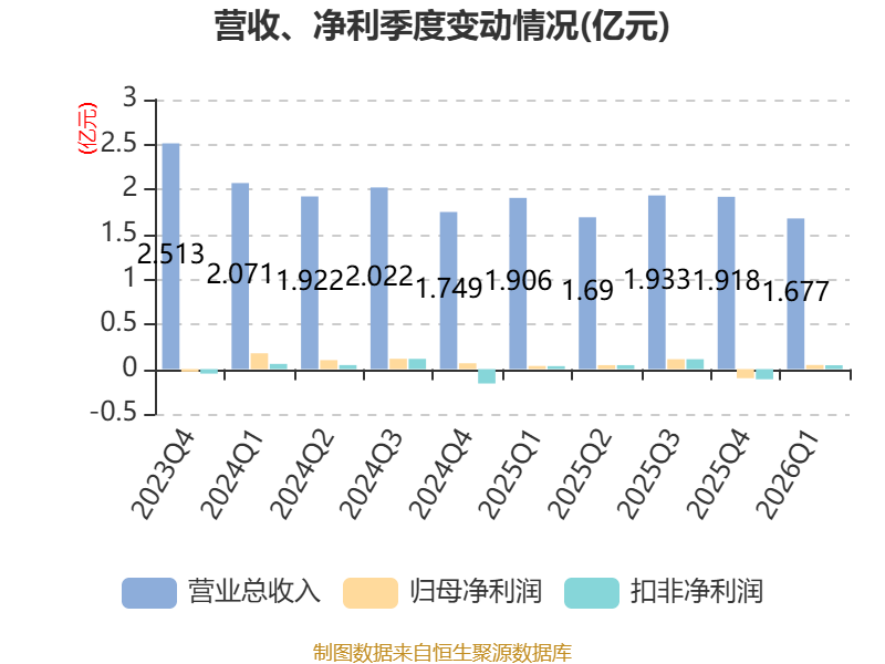 截至2026年一季度末,公司经营活动现金流净额为1722.24万元,同比增长94.28%;筹资活动现金流净额-1328.51万元,同比减少2.67亿元;投资活动现金流净额-5426.37万元,上年同期为-2019.96万元。