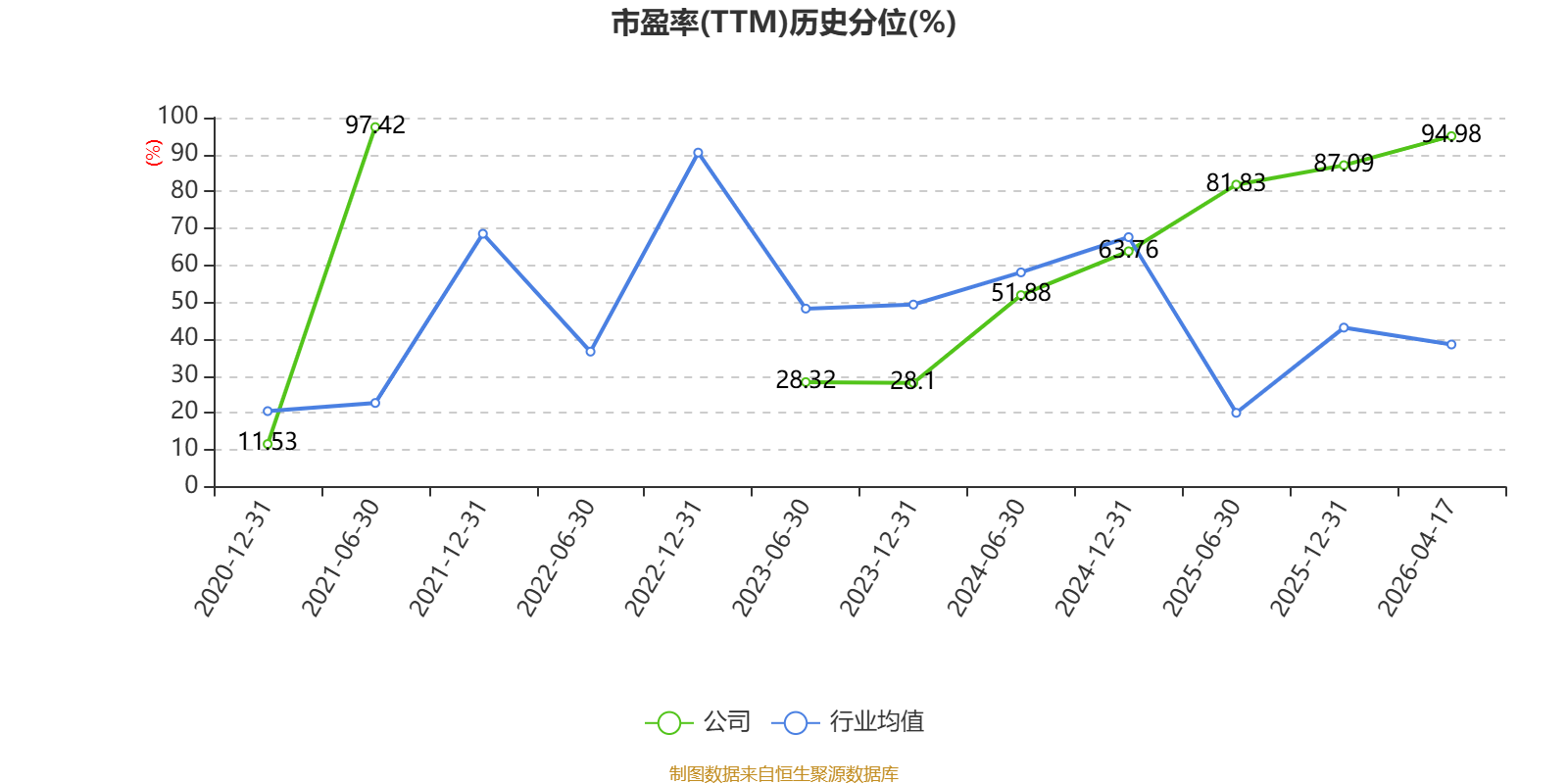 市盈率、市净率为负时,不显示当期分位数,会导致折线图中断。