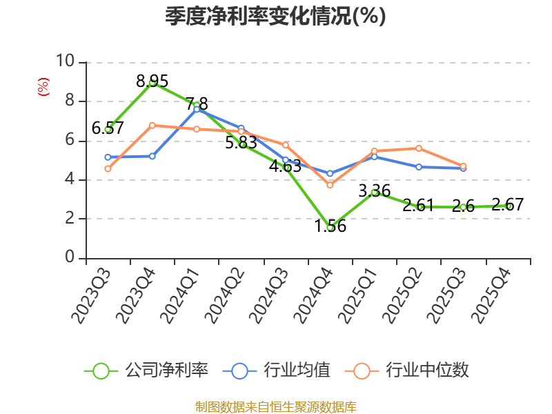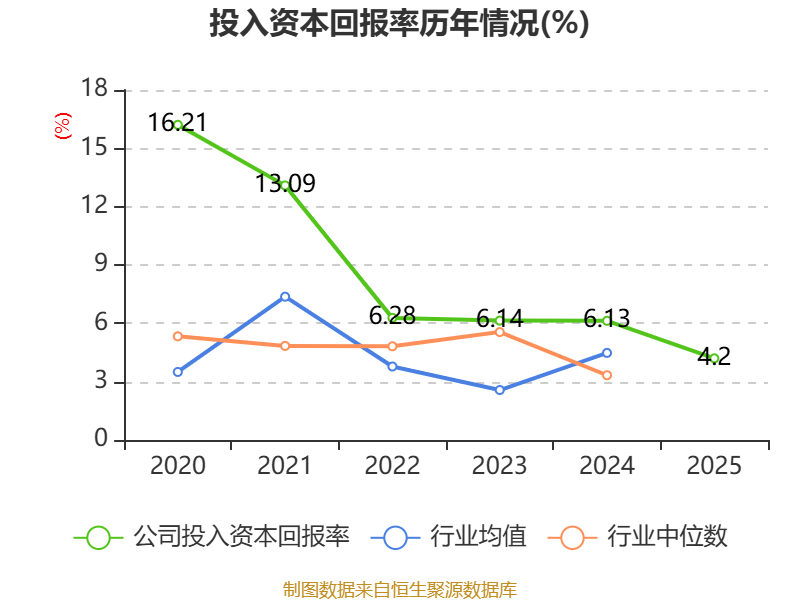 数据显示,2025年公司加权平均净资产收益率为6.84%,较上年同期下降7.37个百分点。公司2025年投入资本回报率为4.2%,较上年同期下降1.93个百分点。