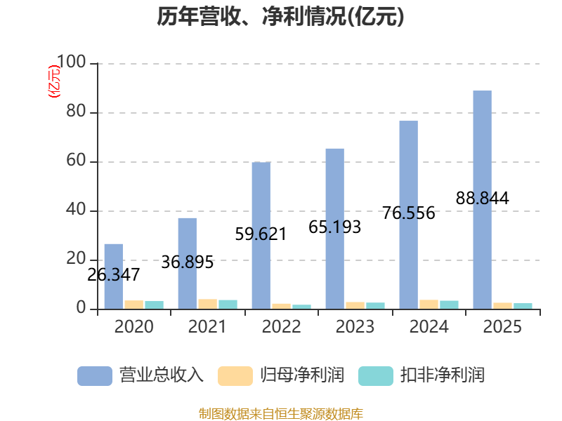 中证智能财讯五洲特纸(605007)4月18日披露2025年年度报告。2025年,公司实现营业总收入88.84亿元,同比增长16.05%;归母净利润2.45亿元,同比下降32.36%;扣非净利润2.27亿元,同比下降30.48%;经营活动产生的现金流量净额为-5735.69万元,上年同期为-9571.1万元;报告期内,五洲特纸基本每股收益为0.51元,加权平均净资产收益率为6.84%。公司2025年度分配预案为:拟向全体股东每10股派现1.6元(含税)。