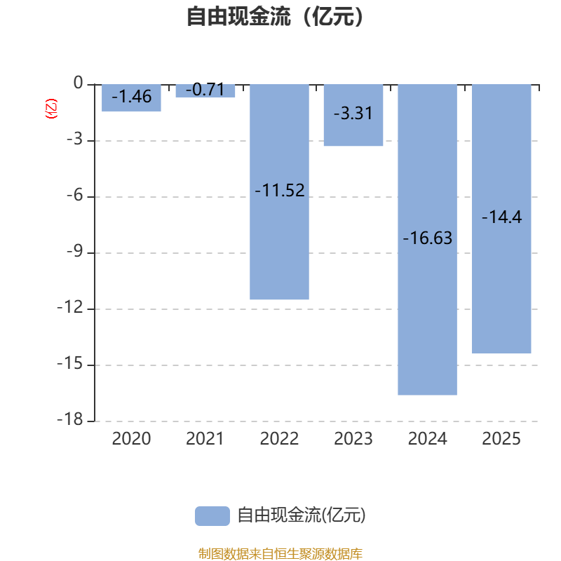 截至2025年,公司经营活动现金流净额为-5735.69万元,同比增加3835.41万元;筹资活动现金流净额13.79亿元,同比减少11.95亿元;投资活动现金流净额-17.96亿元,上年同期为-19.79亿元。