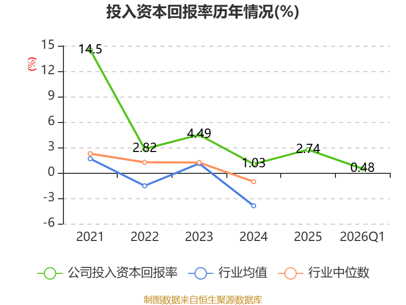 盈利能力方面, 2026年一季度公司加权平均净资产收益率为0.42%,同比上升0.29个百分点。公司2026年第一季度投入资本回报率为0.48%,较上年同期上升0.32个百分点。