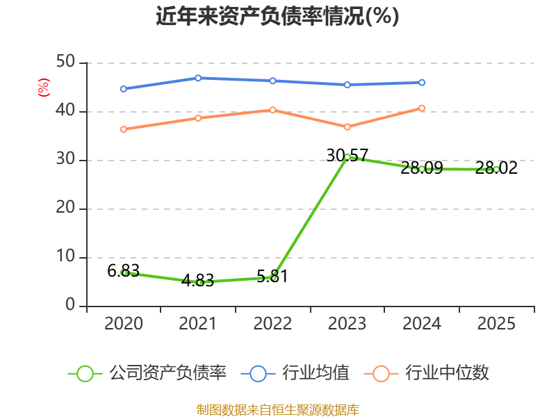 负债重大变化方面,截至2025年末,公司应付票据及应付账款较上年末增加48.9%,占公司总资产比重上升4.08个百分点;长期借款较上年末减少17.66%,占公司总资产比重下降2.44个百分点;短期借款较上年末减少100%,占公司总资产比重下降1.72个百分点;一年内到期的非流动负债较上年末增加49.98%,占公司总资产比重上升0.47个百分点。