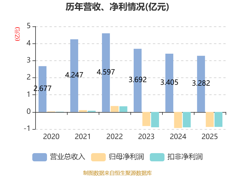 中证智能财讯国发股份(600538)4月18日披露2025年年度报告。2025年,公司实现营业总收入3.28亿元,同比下降3.59%;归母净利润亏损8762.1万元,上年同期亏损9385.02万元;扣非净利润亏损8741.57万元,上年同期亏损9000.33万元;经营活动产生的现金流量净额为-1339.66万元,上年同期为194.83万元;报告期内,国发股份基本每股收益为-0.17元,加权平均净资产收益率为-11.98%。