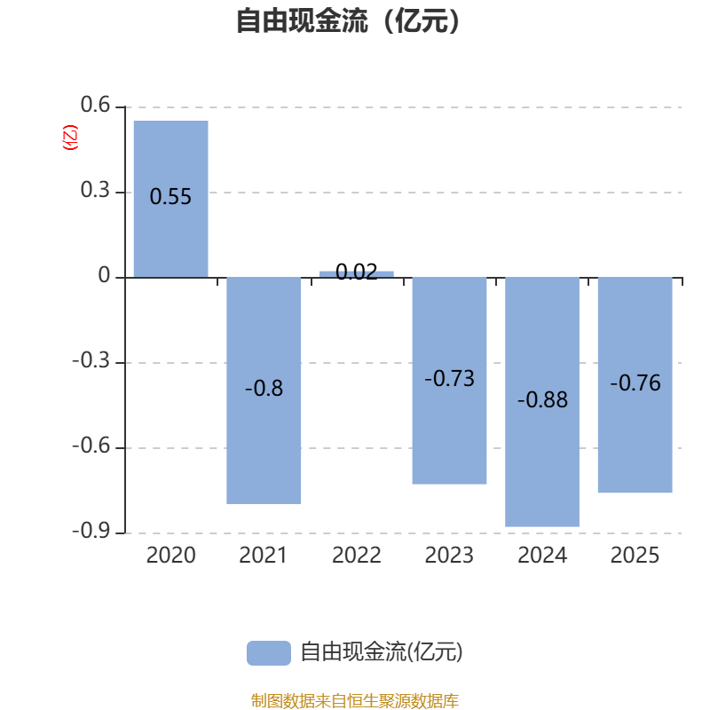 截至2025年,公司经营活动现金流净额为-1339.66万元,同比减少1534.49万元;筹资活动现金流净额1494.9万元,同比增加1868.72万元;投资活动现金流净额1261.22万元,上年同期为-795.08万元。