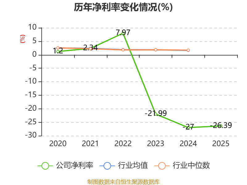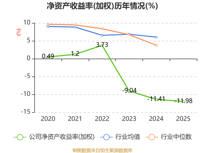 数据显示,2025年公司加权平均净资产收益率为-11.98%,较上年同期下降0.57个百分点。公司2025年投入资本回报率为-10.54%,较上年同期上升0.16个百分点。