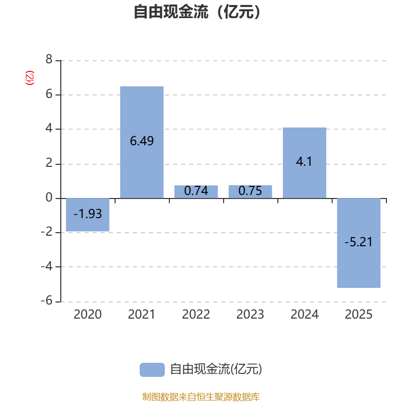 截至2025年,公司经营活动现金流净额为-1.41亿元,同比减少8.28亿元;筹资活动现金流净额-1.85亿元,同比增加5.27亿元;投资活动现金流净额2.82亿元,上年同期为-8.47亿元。