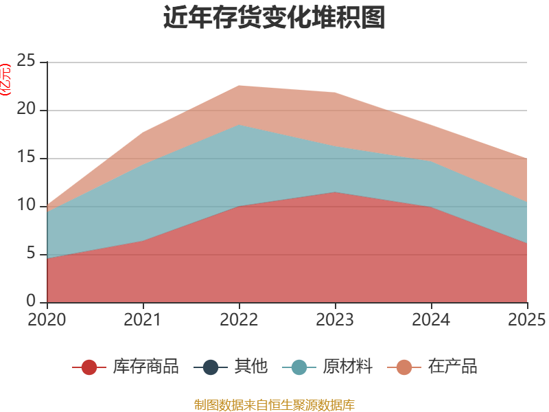 从存货变动来看,截至2025年末,公司存货账面价值为14.92亿元,占净资产的47.29%,较上年末减少3.51亿元。其中,存货跌价准备为5802.11万元,计提比例为3.74%。
