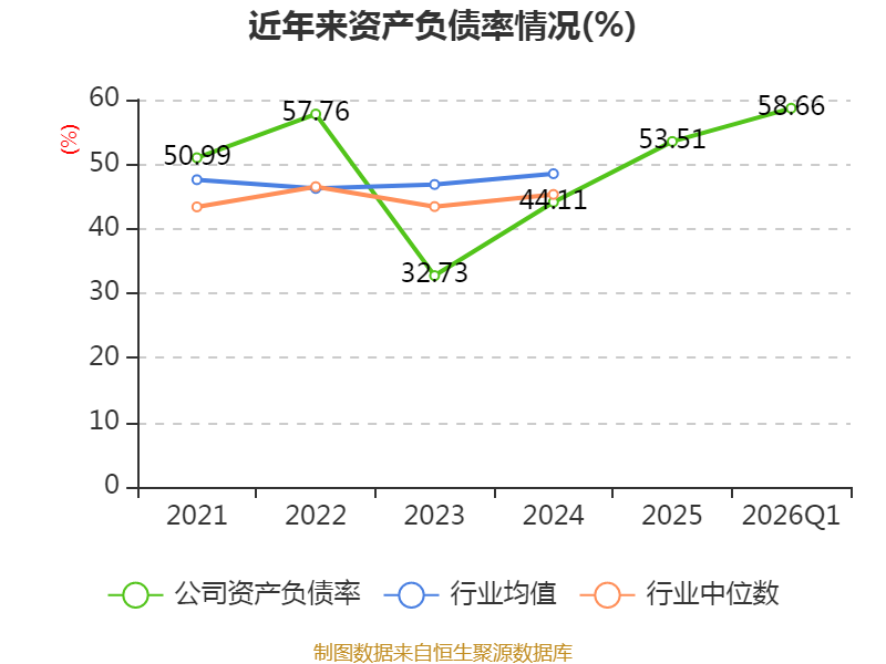 负债重大变化方面,截至2026年一季度末,公司合同负债较上年末增加74.23%,占公司总资产比重上升10.11个百分点;短期借款较上年末减少28.69%,占公司总资产比重下降3.16个百分点;长期借款较上年末减少44.22%,占公司总资产比重下降1.97个百分点;应付票据及应付账款较上年末增加3.72%,占公司总资产比重下降1.04个百分点。