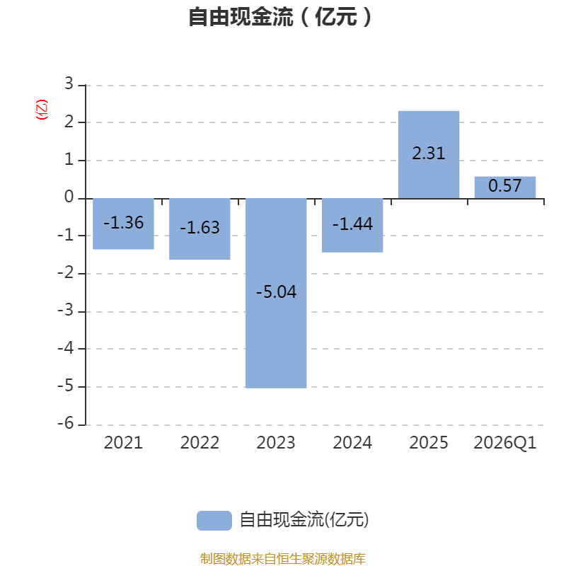 截至2026年一季度末,公司经营活动现金流净额为2.5亿元,同比增加3.06亿元;筹资活动现金流净额-1.04亿元,同比减少8422.84万元;投资活动现金流净额-1.58亿元,上年同期为3449.42万元。